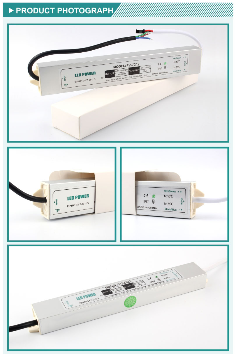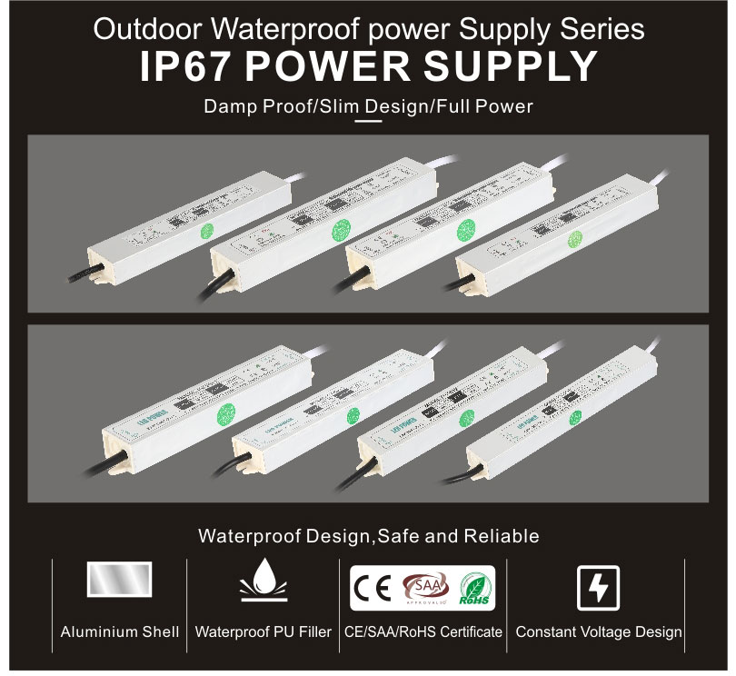 This waterproof power supply has a wide range of applications. In outdoor environments, such as parking lot lighting, billboard lighting and public lighting, IP67 waterproof power supply can ensure the normal operation of lighting equipment in wind and rain and reduce maintenance costs. At the same time, equipment in the industrial field, such as automation machinery, industrial control equipment, etc., also often need to withstand the test of harsh environments. The protective characteristics of the IP67 waterproof power supply enable these devices to maintain efficient and stable operation under harsh conditions such as oil and water vapor.